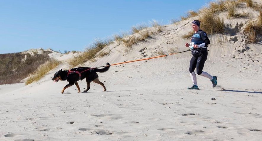 Het is hardlopen op onverharde ondergrond, met uw hond recht voor u die met u samenwerkt. De elastische lijn tussen u in zorgt voor een constante verbinding. Uw conditie en de onderlinge band wordt door deze sport enorm sterk.