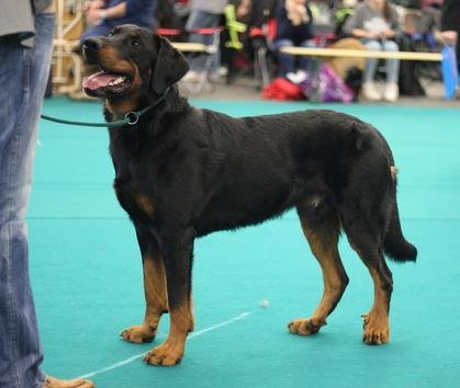 Reu van goed formaat en type. Minimale aftekening in het hoofd. Prima gebit. Volle voorsnuit, goede schedel. Mooi oog en uitdrukking. Prima lichaam en bovenbelijning. Mooi front. Goede hoekingen. Gaat gemakkelijk. Prima presentatie en ringgedrag.