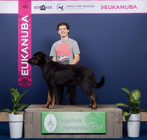 Frans van der Peijl laat weten zeer trots te zijn op zijn beauceronreu Django (Galik du Diable de Morval x Leann Chayenne de la Fiere Maison). Django ontving vandaag de bevestiging van zijn Nederlands Kampioenschap.