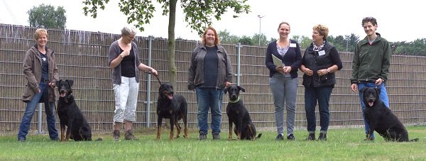 De deelnemers, 4 reuen en 4 teven, ontvingen alle uit handen van het bestuur van Stichting Bestgetest hun certificaat van deelname.