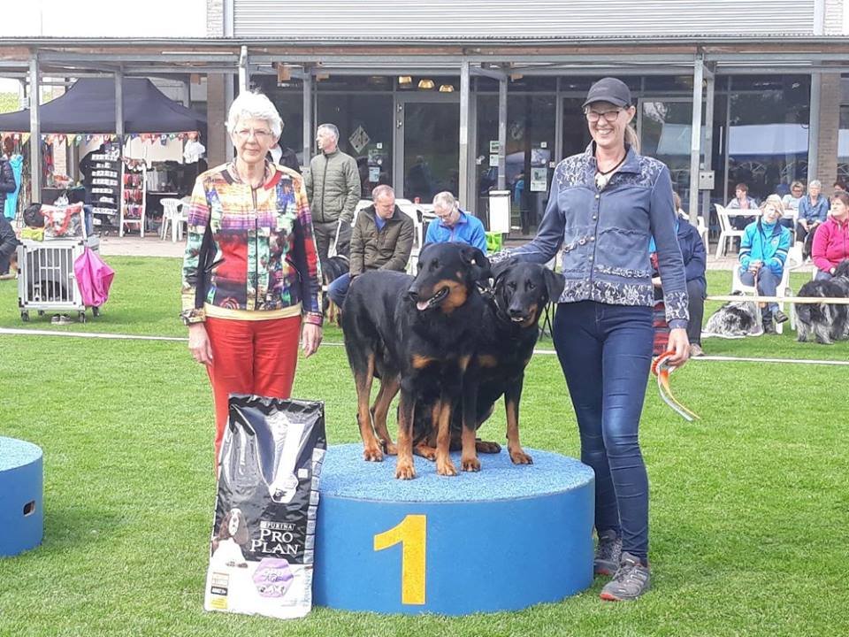 Susanne Spaan wint met haar honden Inez Poussiere de Lune en Amou du Pre du Baron de koppelklasse op de Joe Kat Show