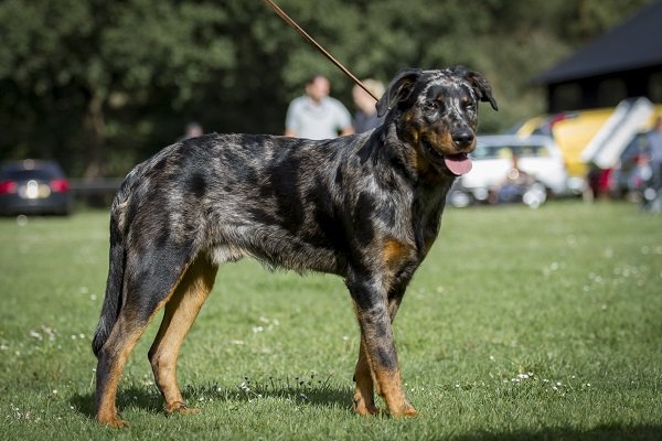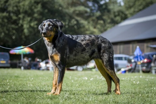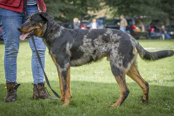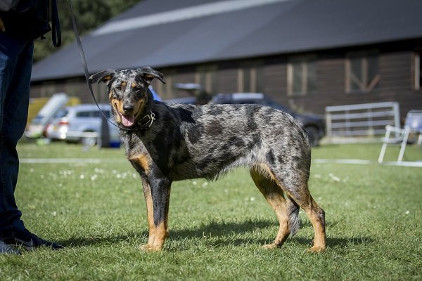 11 maanden. Nog jeugdig ogende reu van prima type en verhoudingen. Mooi hoofd. Correct gebit. Goed gevormd oog met vlekje blauw. Oor wat hoog en wijd gedragen. Prima bone voor maat. Voor en achter goed en evenredig gehoekt. Prima vacht, arlequin met warm brand. Goed uitgrijpend gangwerk, staart wat hoog gedragen. Vriendelijk gedrag.