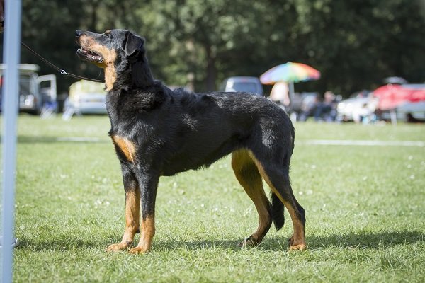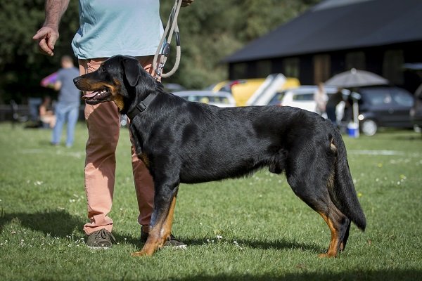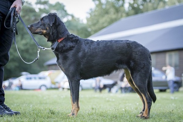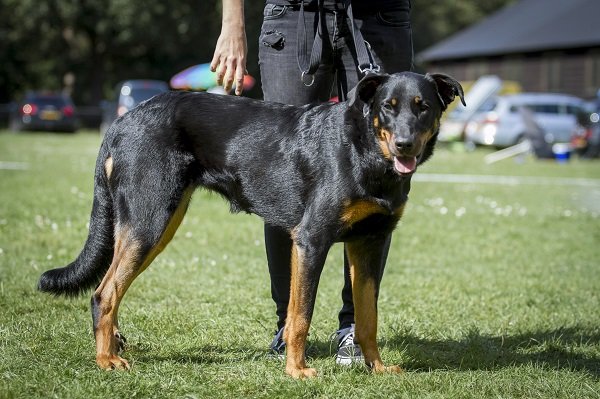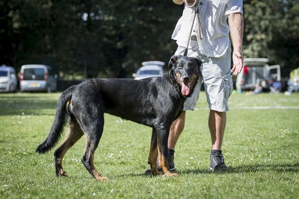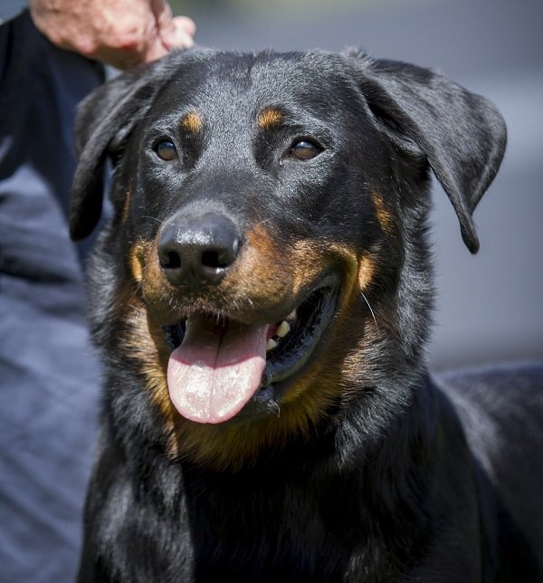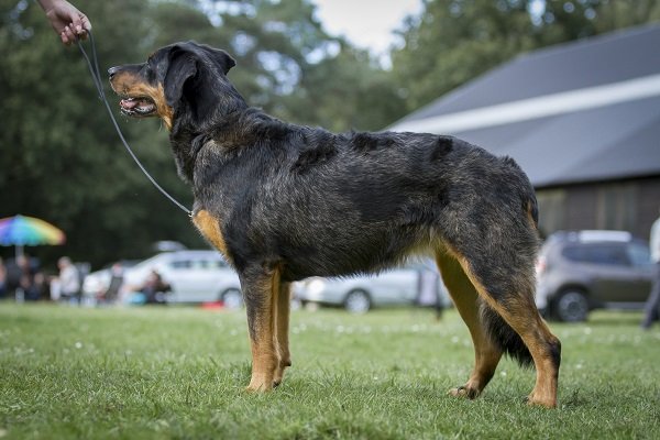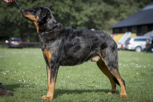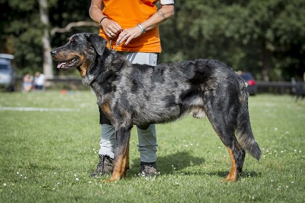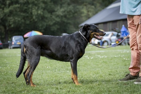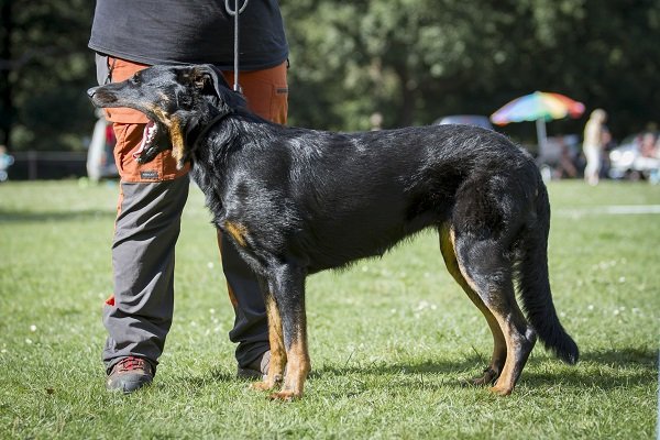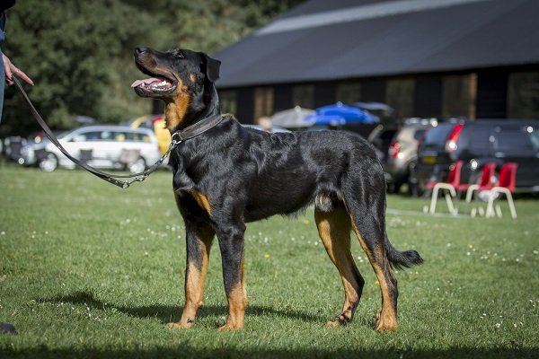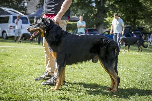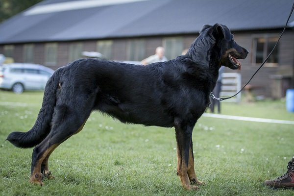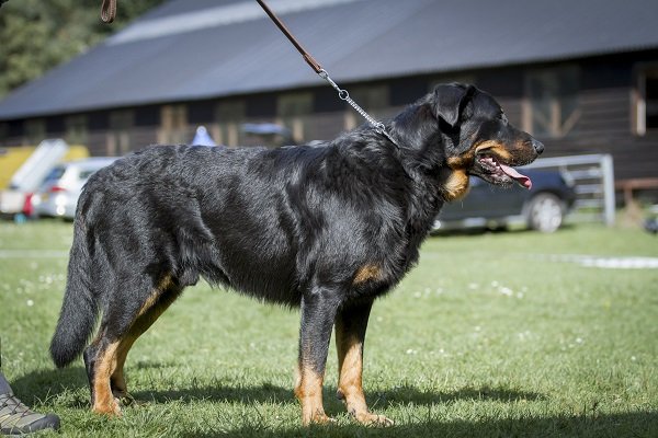 3 jaar. Flinke reu van goede verhoudingen. Hoofd in alle opzichten stevig. Correct gebit. Mooi oog. Goed gedragen oor. Lichaam met goede verhoudingen en belijningen. Goede hoekingen. Vlot uitgrijpend gangwerk. Vacht momenteel kort en glad aanliggend, zonder ondervacht. Mooi brand. Goede staartdracht. Vriendelijk gedrag.