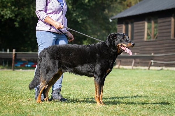 8,5 jaar vrouwelijke teef. Prima maat en verhoudingen. Mooie topline. Goede voorborst en hoekingen. Compleet, wat afgesleten gebit. Harde vacht, wat weinig aftekeningen. Ruime soepele gangen. Fijn stabiel gedrag.